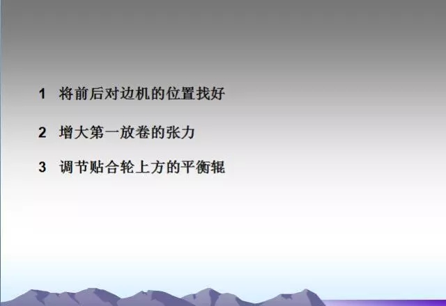 背輥及各過輥粘有異物或使用過多的水。需要經(jīng)常檢查,及時(shí)發(fā)現(xiàn)并清理,并注意不要損傷輥面。